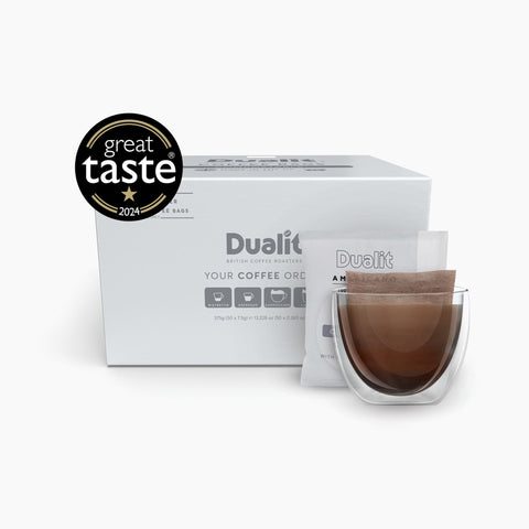 We are excited to announce that Dualit Americano Compostable Coffee Bags have been awarded the 1 Star Great Taste Award 2024. Americano is a medium strength smooth coffee.