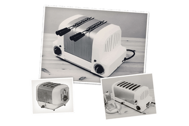Max Gort-Barten the founder of Dualit was born in Germany in 1914. Max's father was also an inventor and the family produced acetate wallets in a factory behind their house. Max found himself in England as WWII broke out. After 5 years in the army, he bought a factory in Camberwell with the intention of manufacturing one of his many inventions, the first of which was a cocktail shaker. Next was a heater with a dual function element and a light, named the 'Dual Light heater' from which the company's name was born. His first successful product was the flip-sided toaster, patented in 1946.